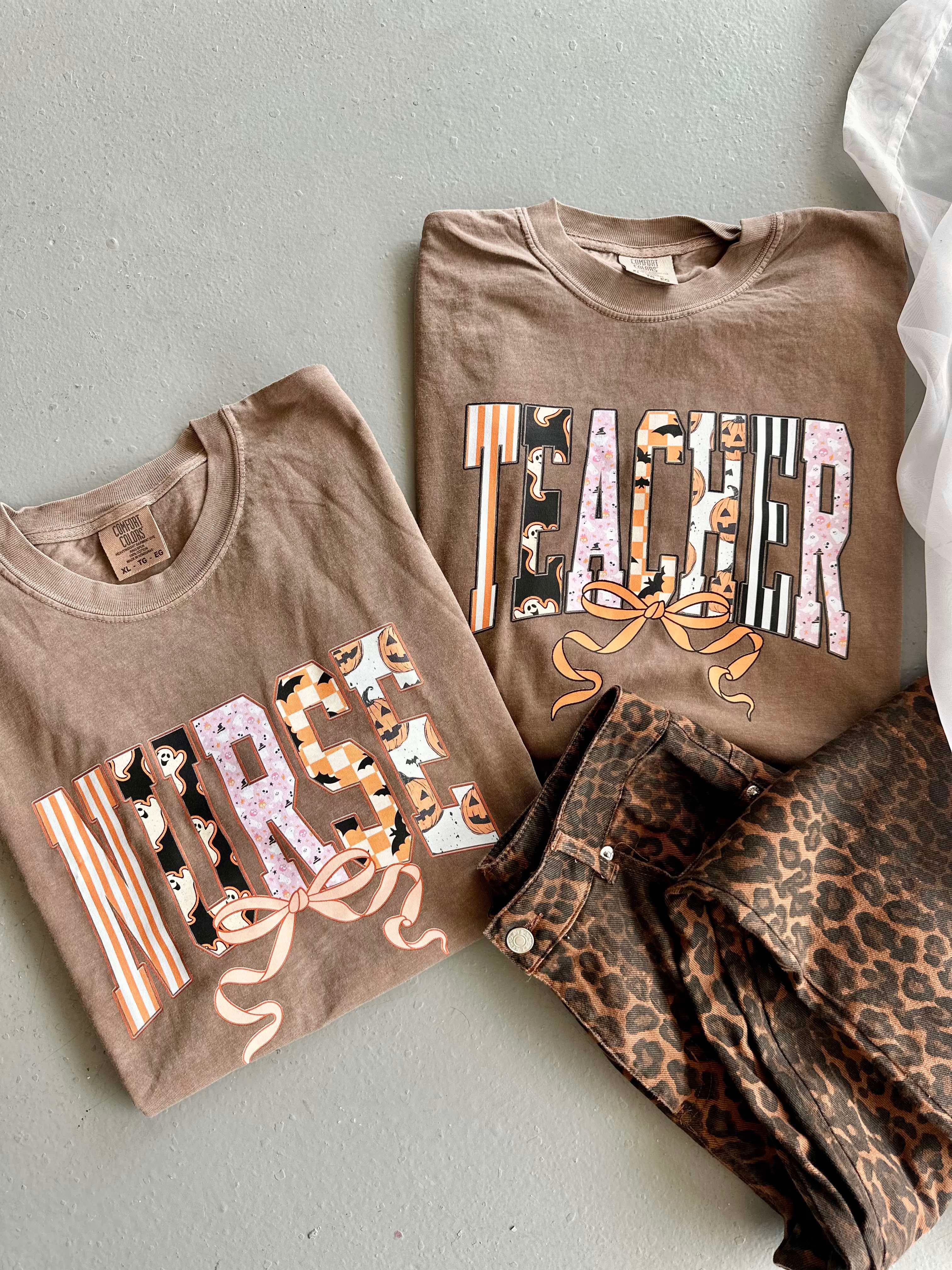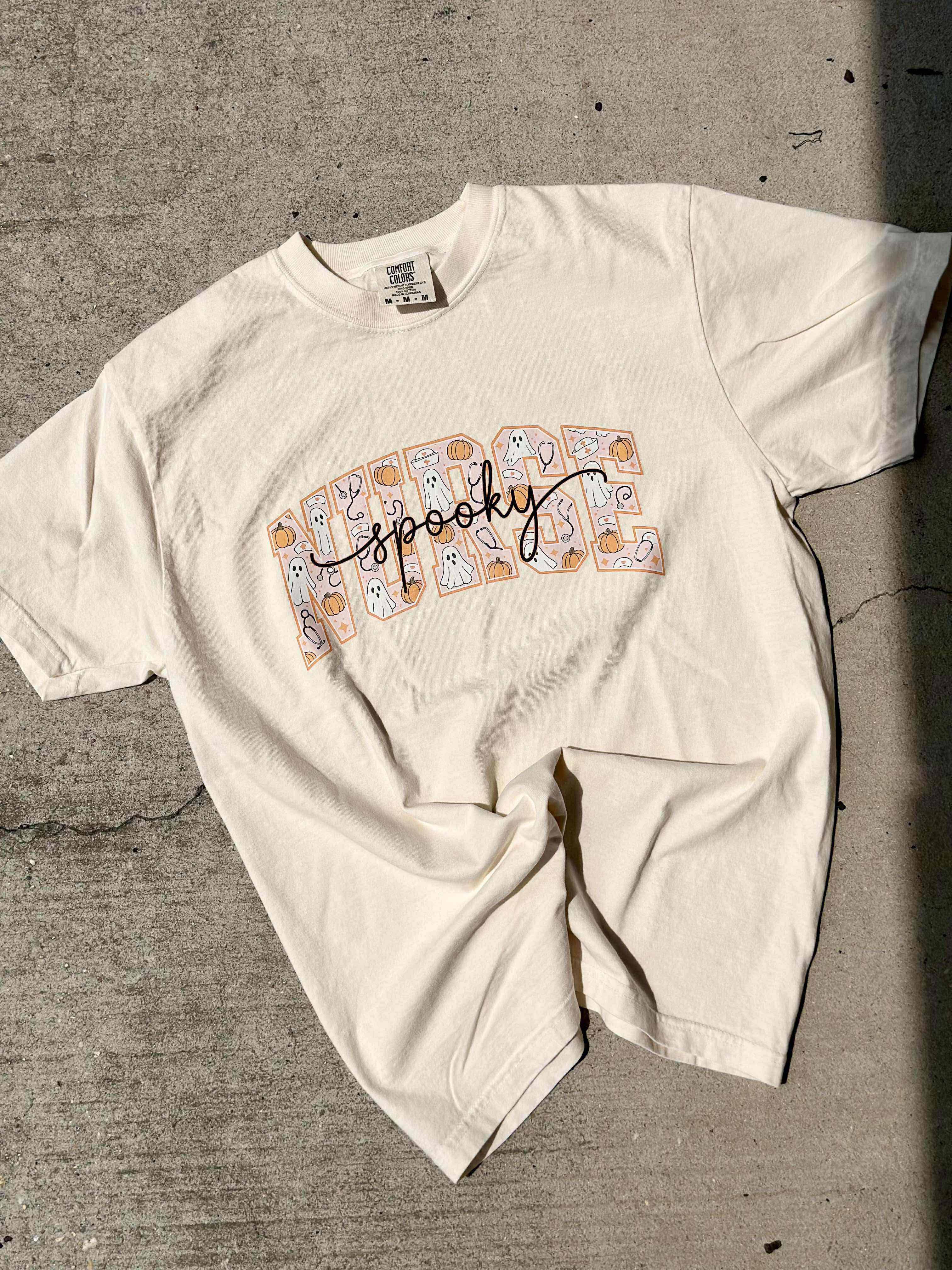 Spooky Cursive Pumpkin Ghost Custom Graphic Tee