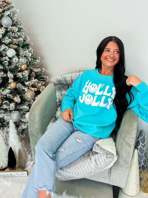 Holly Jolly Retro Wave Happy Puff Sweatshirt