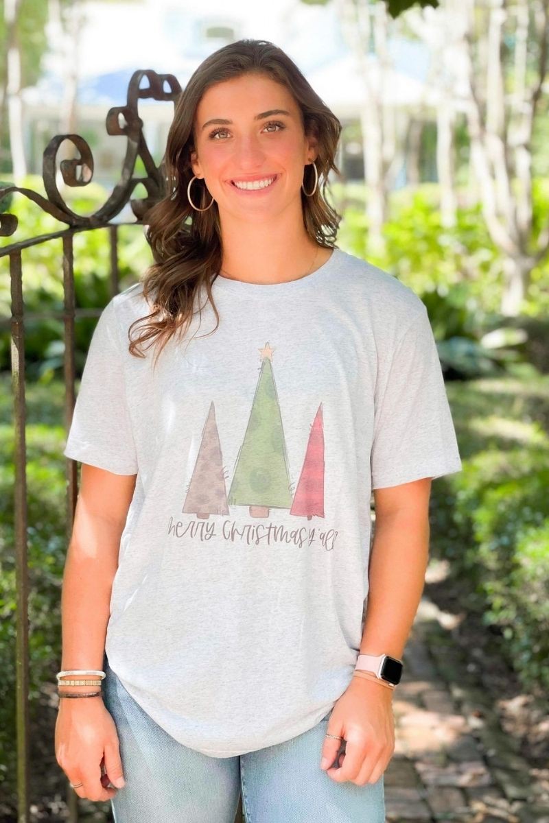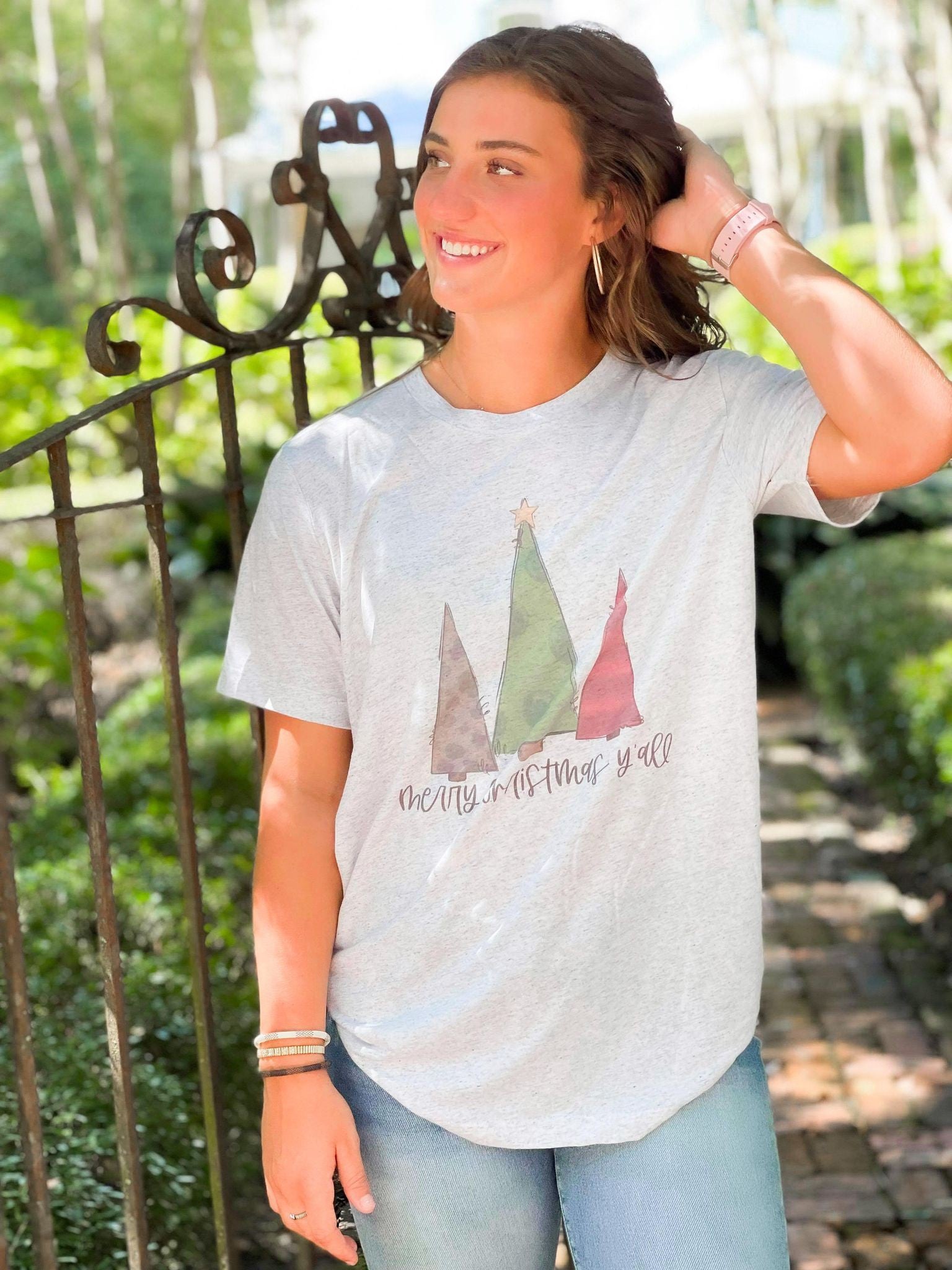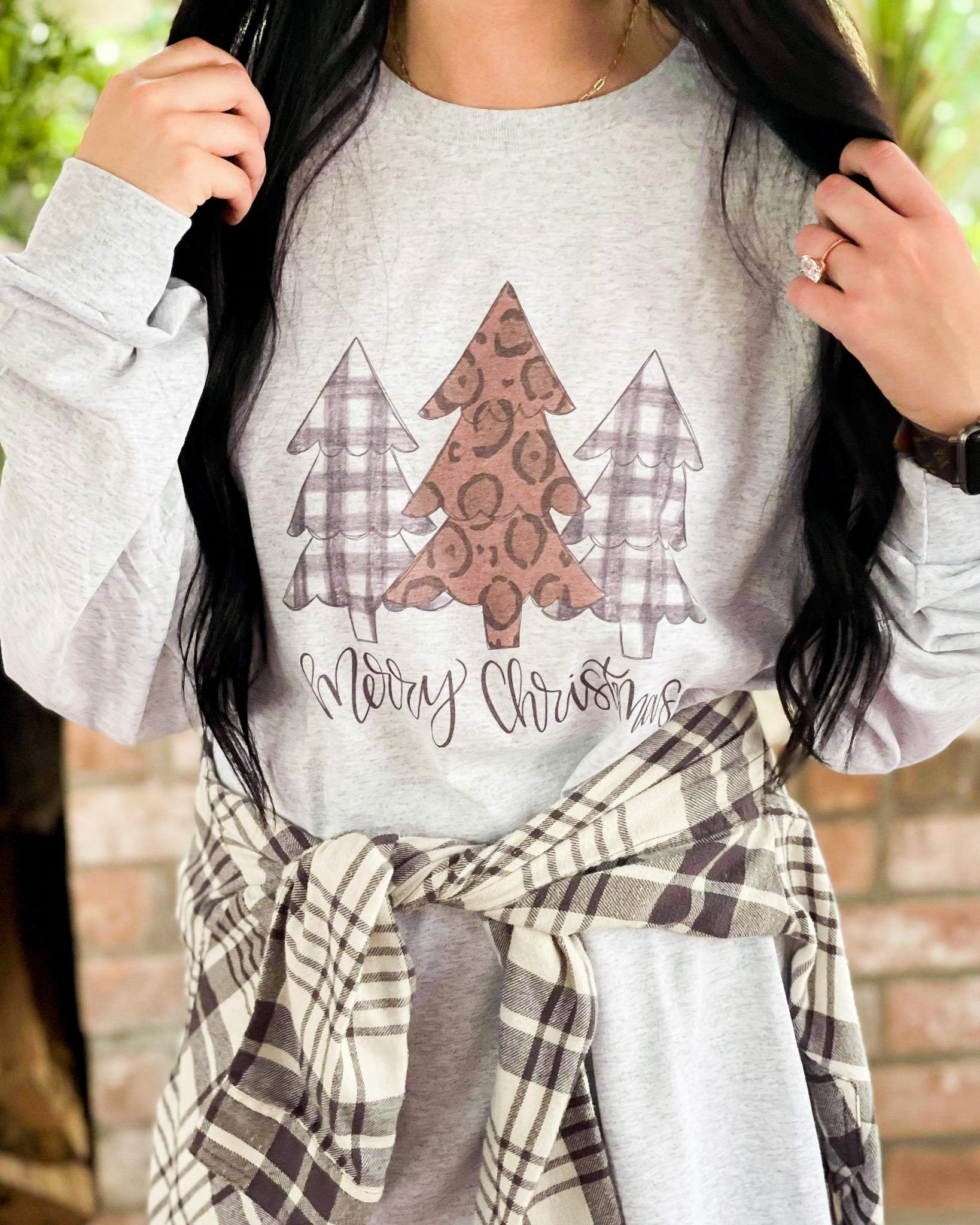 Plaid and Leopard Merry Christmas Trees Longsleeve