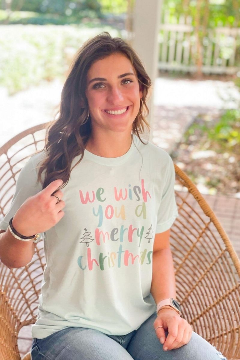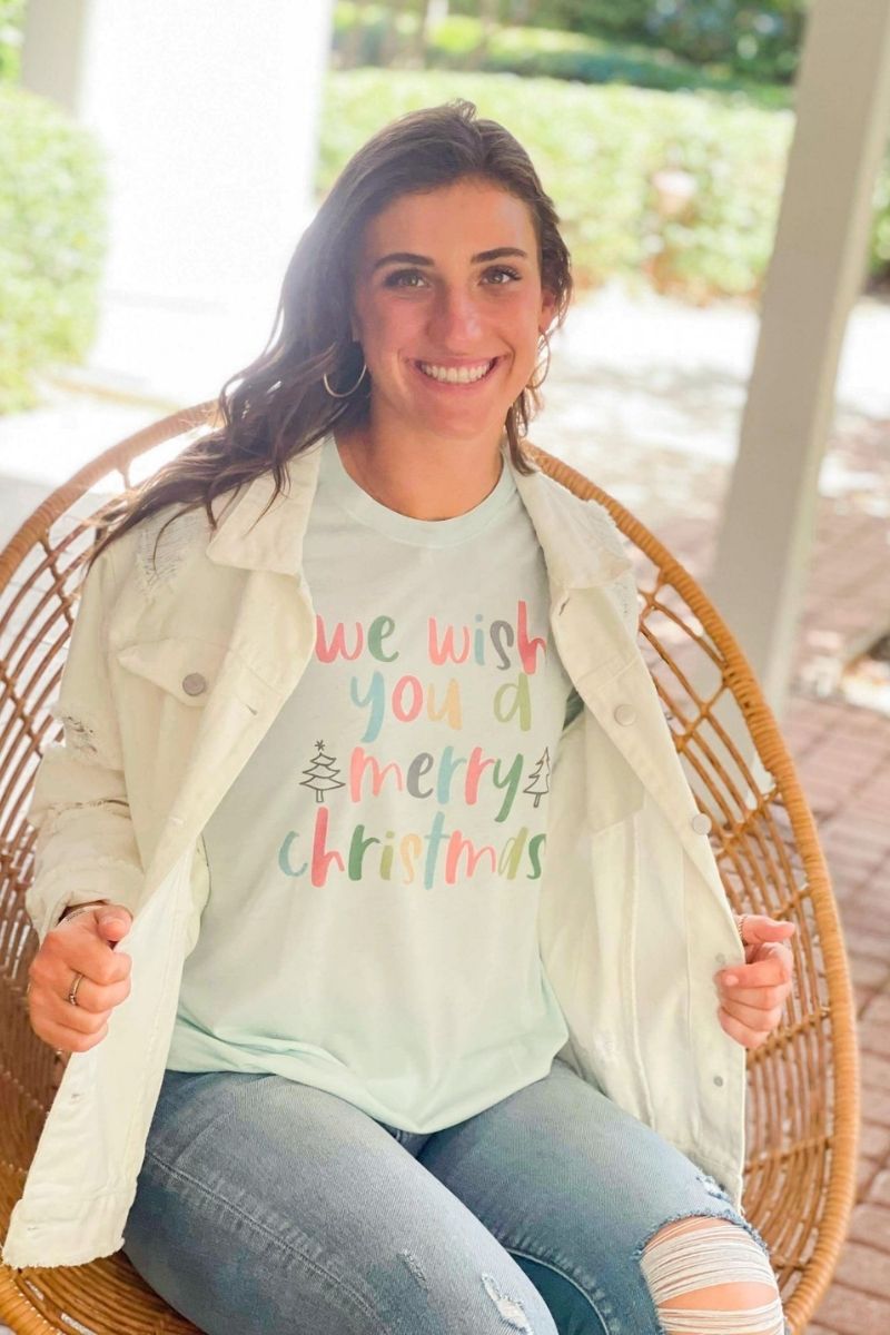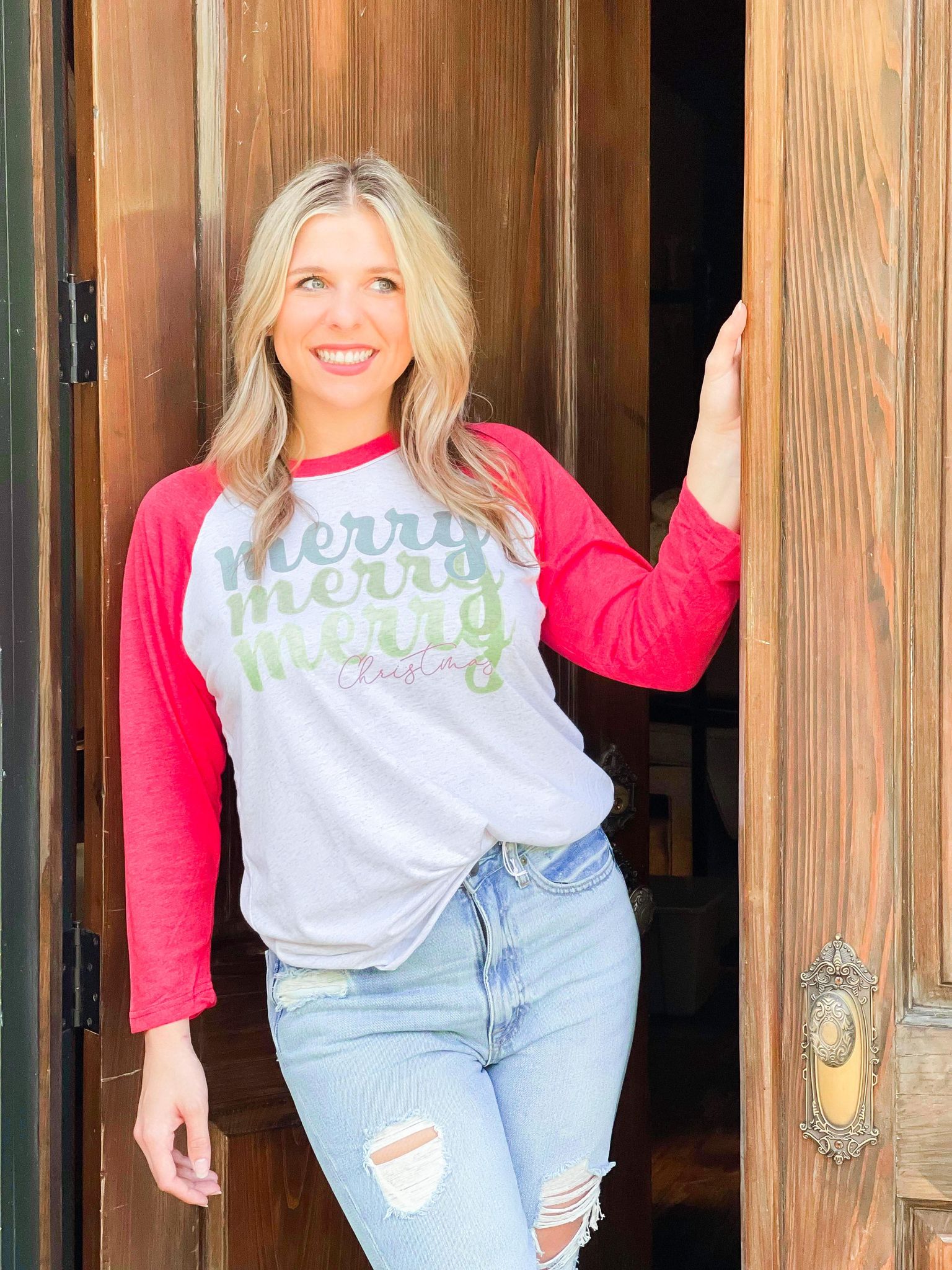 Merry Christmas Green Stacked Raglan
