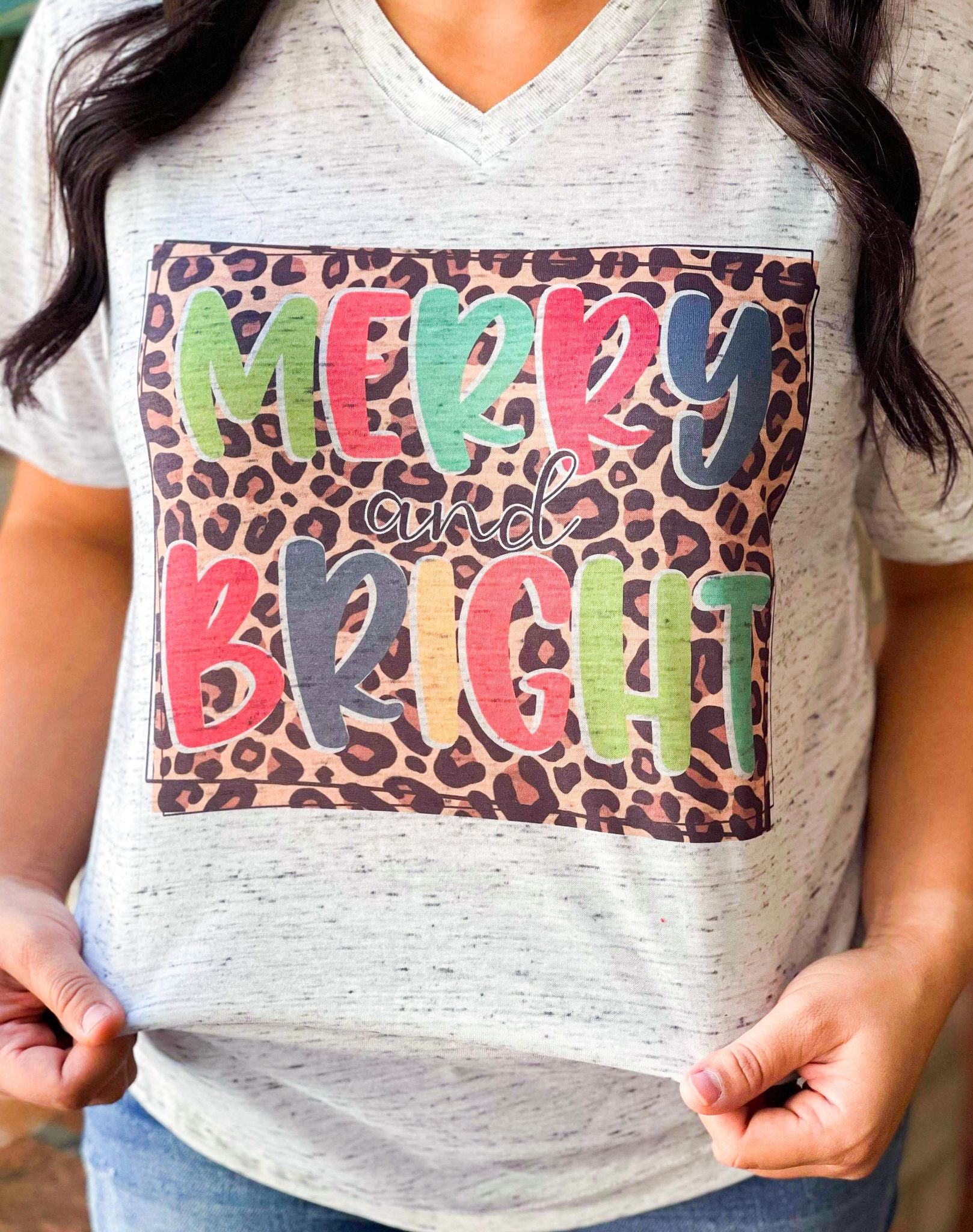 Merry And Bright Leopard Box Marble Tee