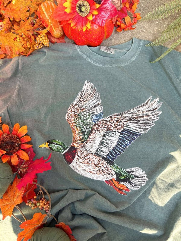 Faux Rhinestone Mallard Duck Hunting DTF Tee