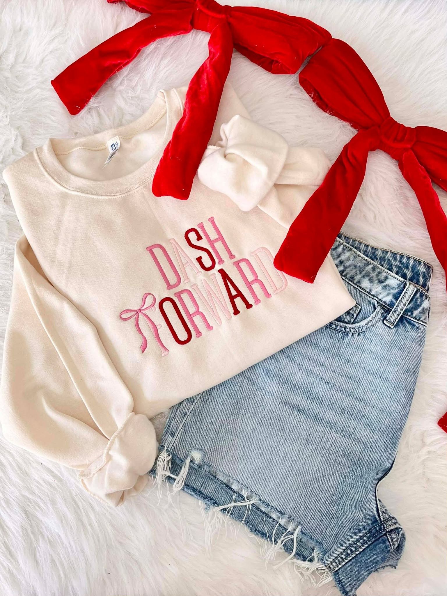 Boutique Valentines Day Bow Embroidered Sweatshirt