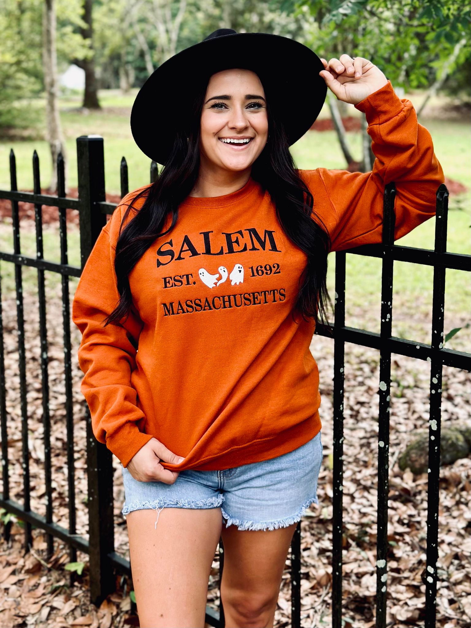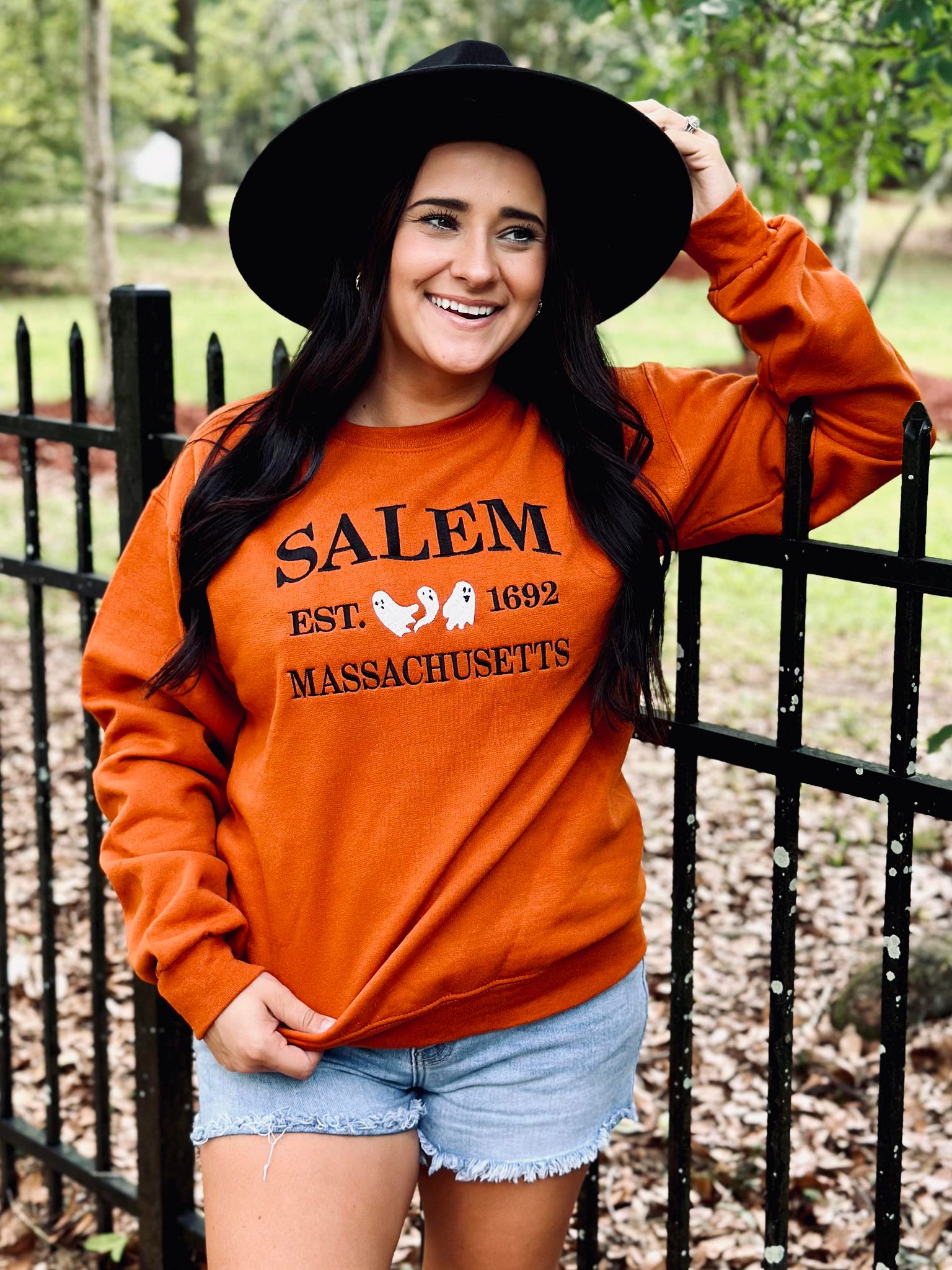 Salem Massachusetts Ghost Embroidered Sweatshirt