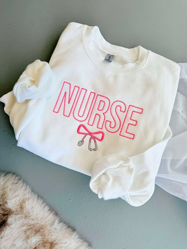 Pink Nurse Stethoscope Bow Graphic Embroidered Sweatshirt
