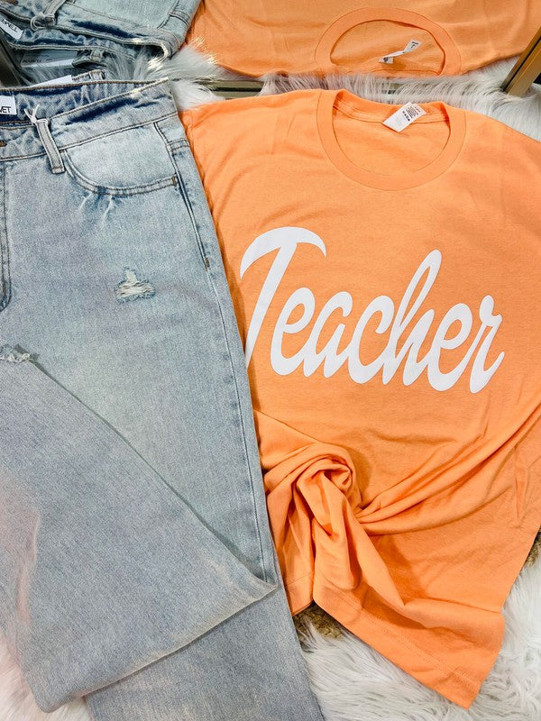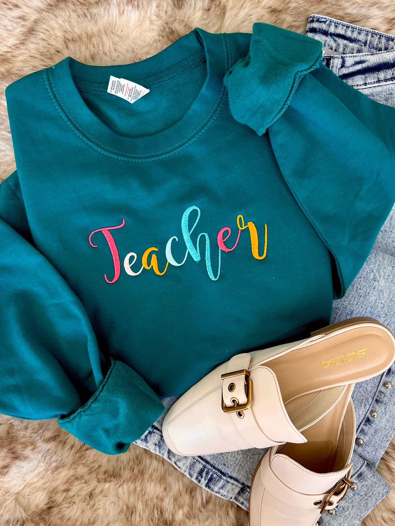 Teacher Rainbow Cursive Embroidered Sweatshirt