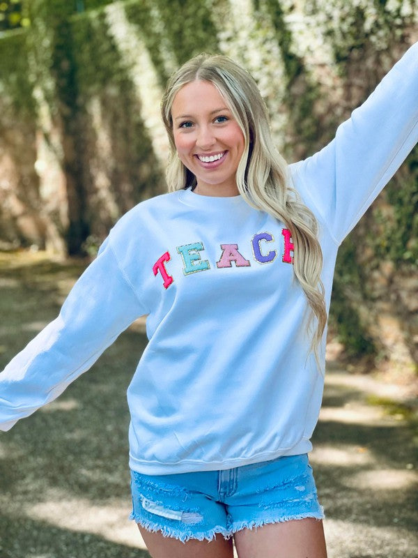 Colorful Teacher Multi Font Embroidered Sweatshirt