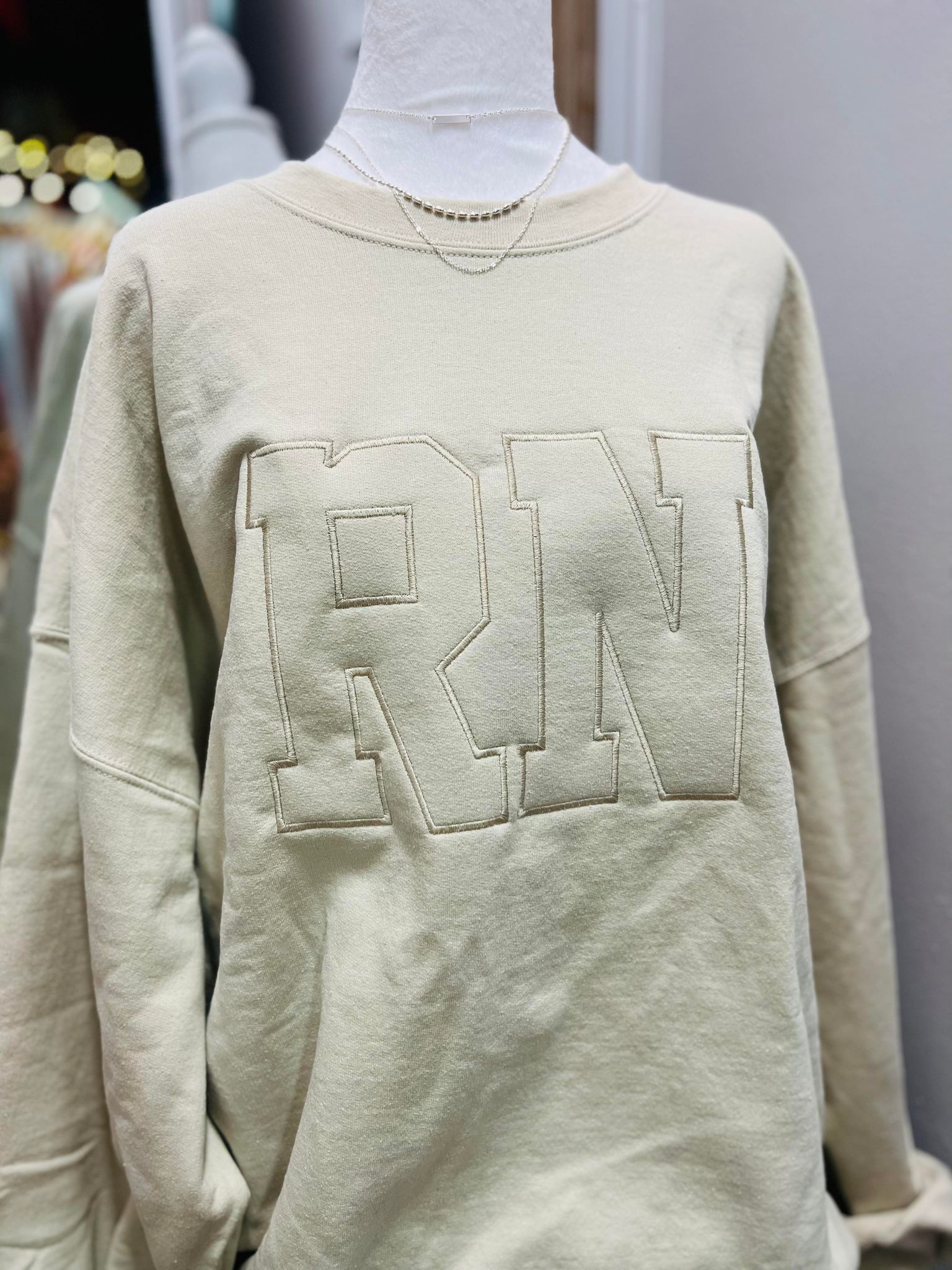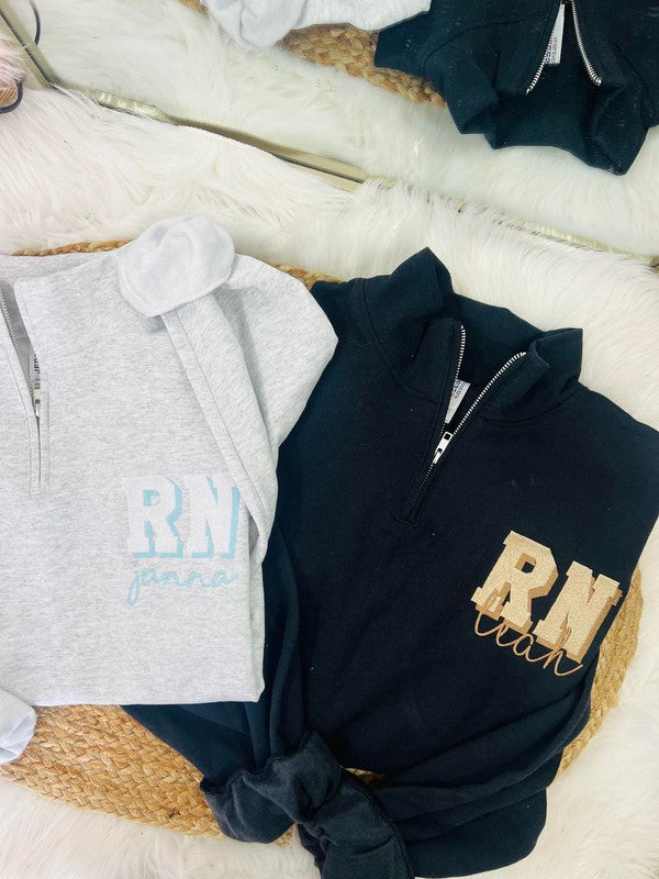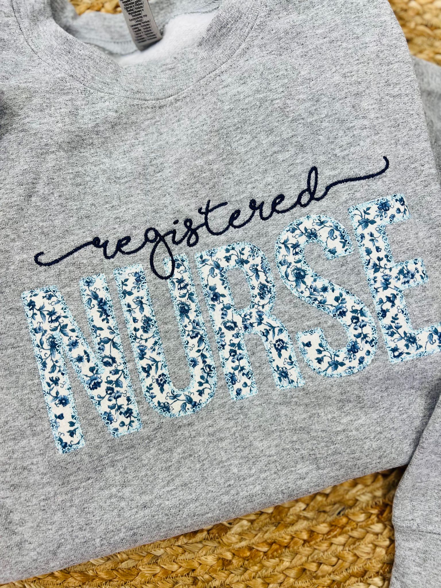 Floral Registered Nurse 2 Font Applique Sweatshirt
