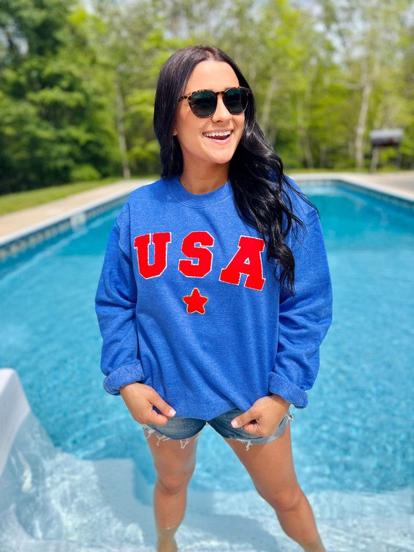 USA Star Chenille Patch Patriotic Sweatshirt