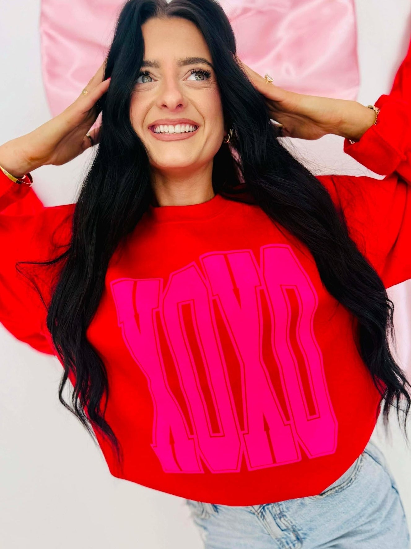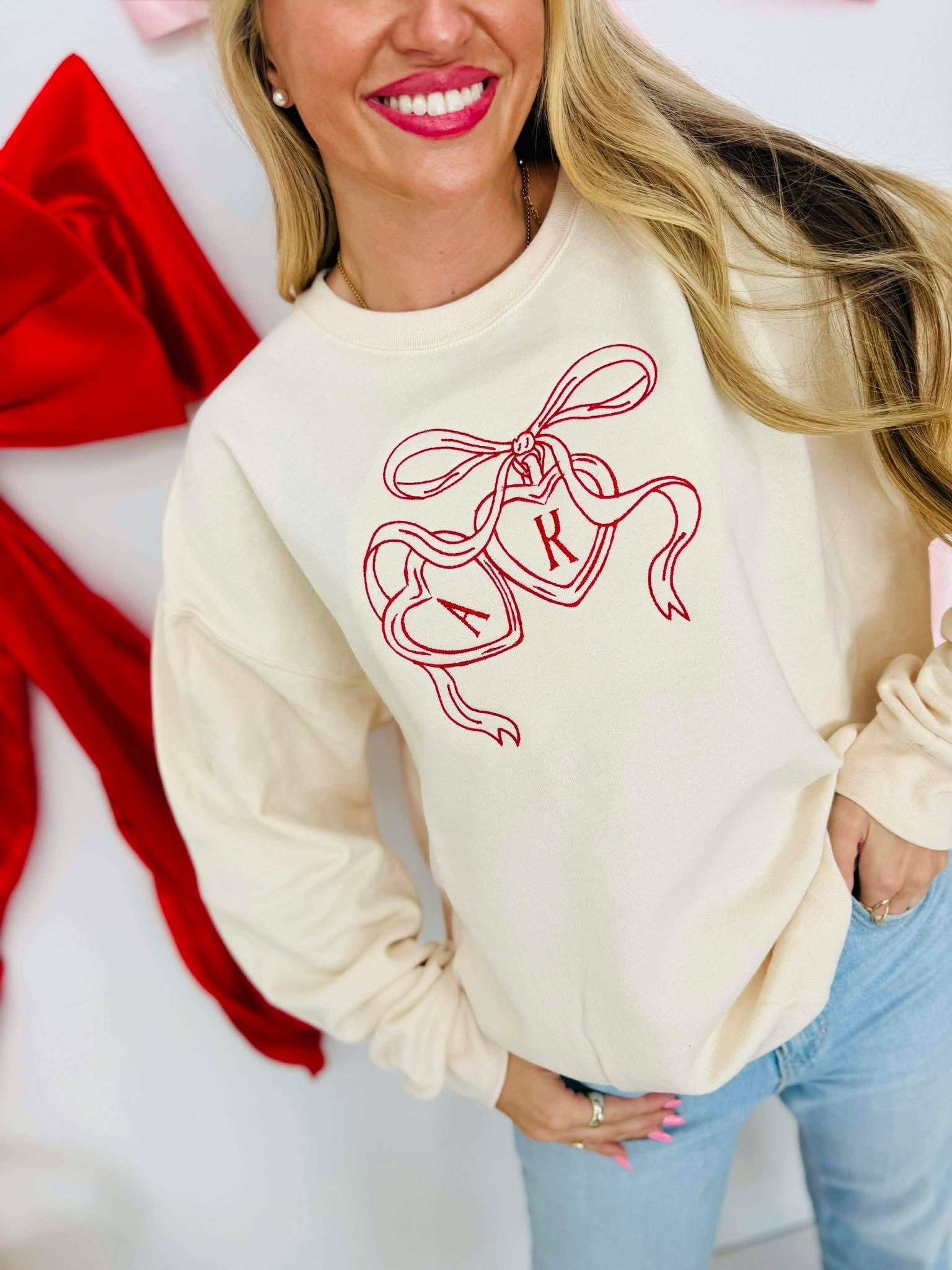 Boutique Valentines Day Bow Embroidered Sweatshirt