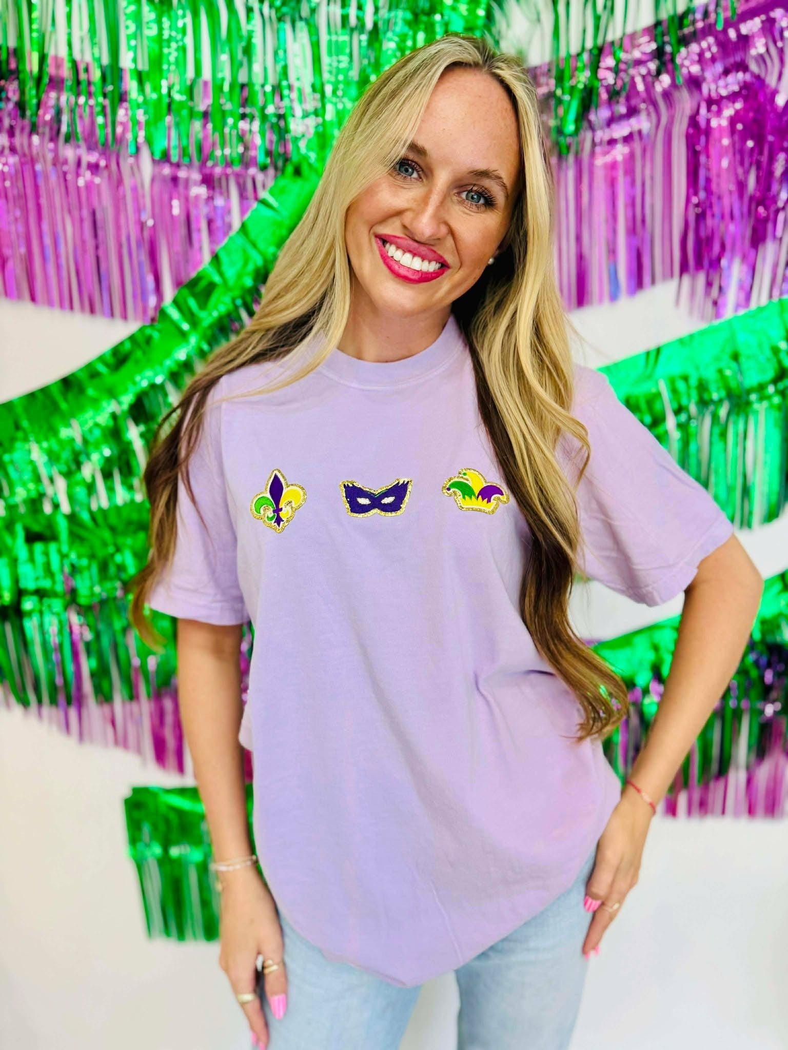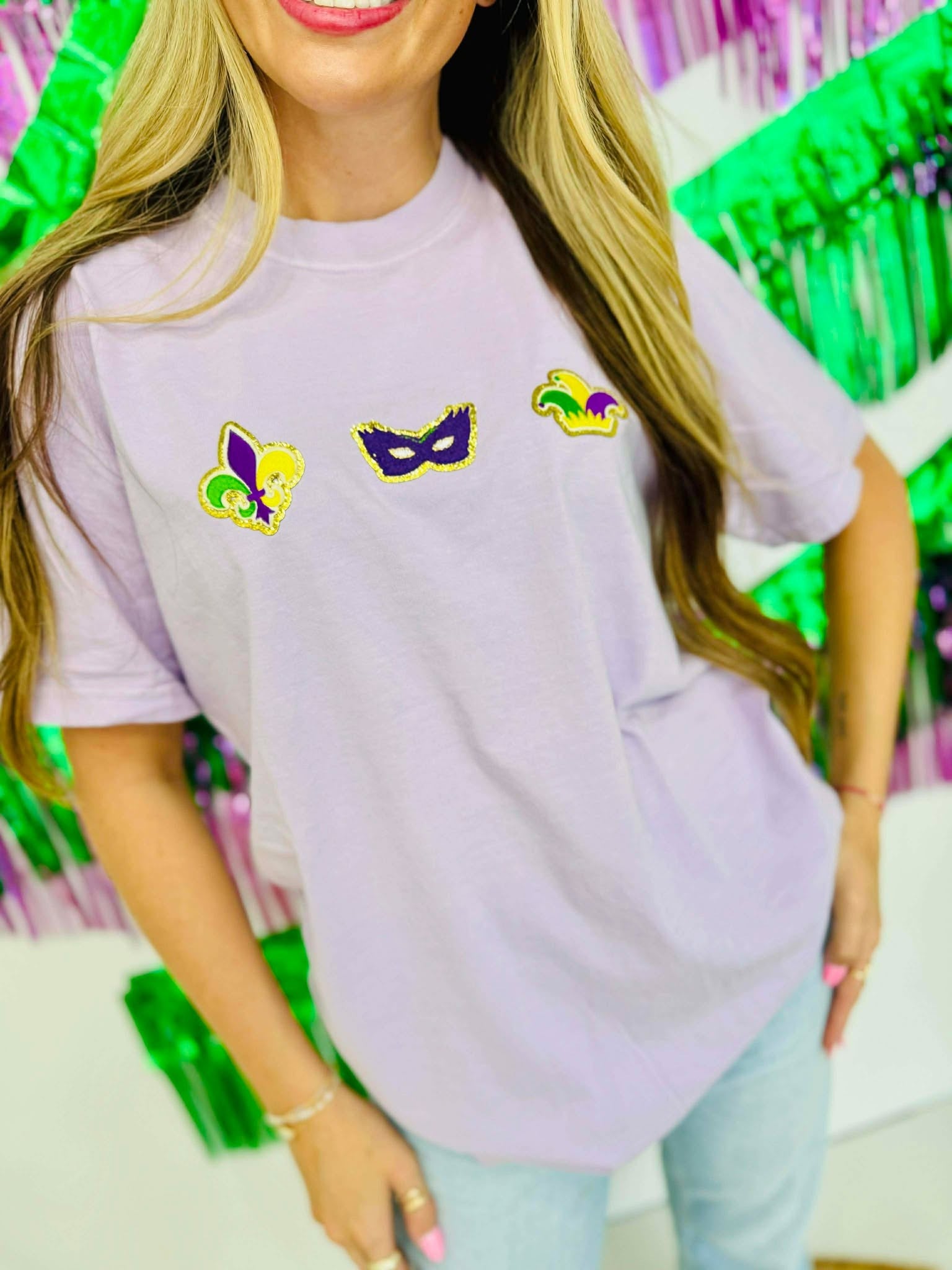Mardi Gras Trinket Trio Chenille Patch Tee