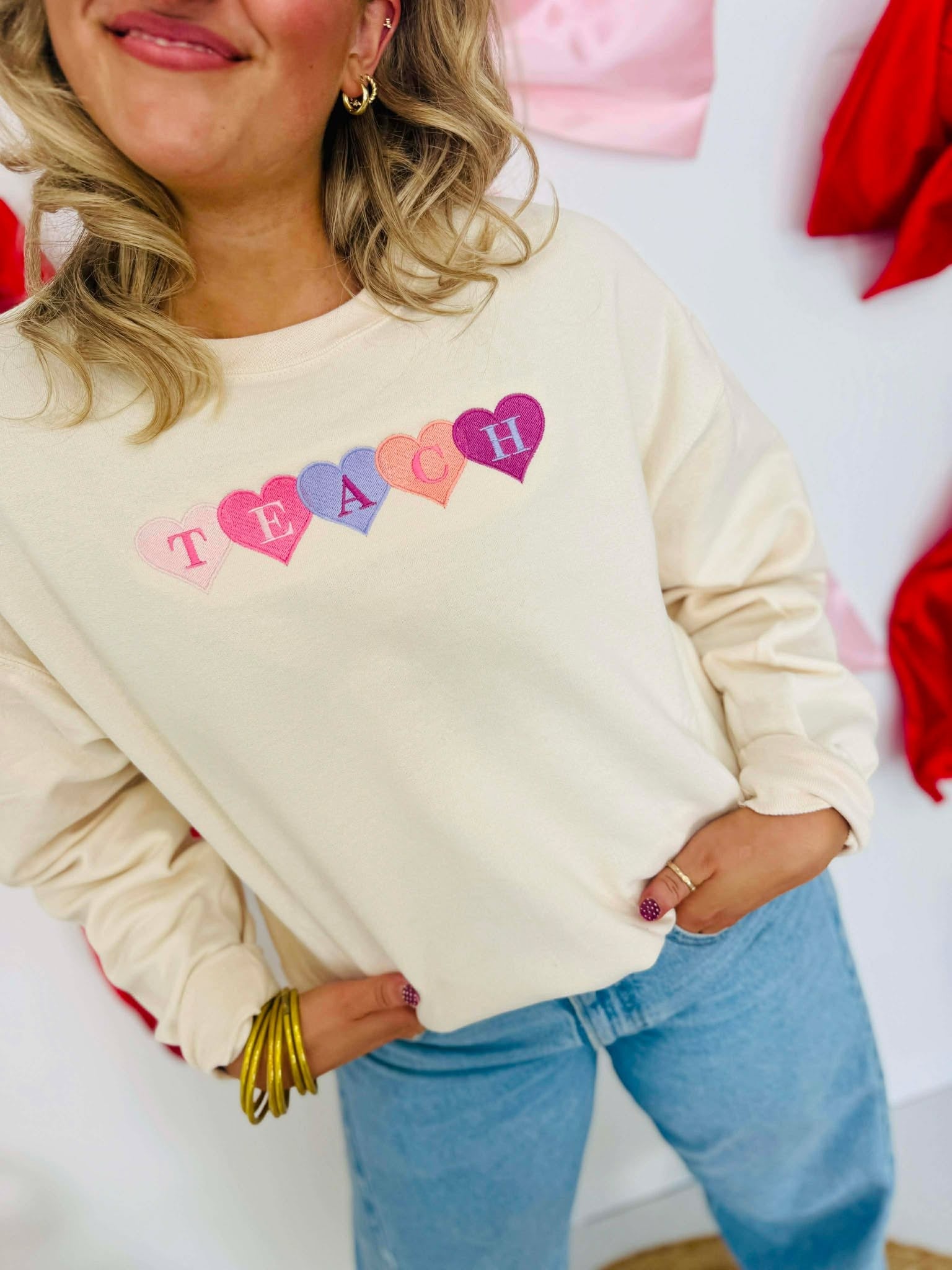 Teach Sweethearts Embroidered Sweatshirt