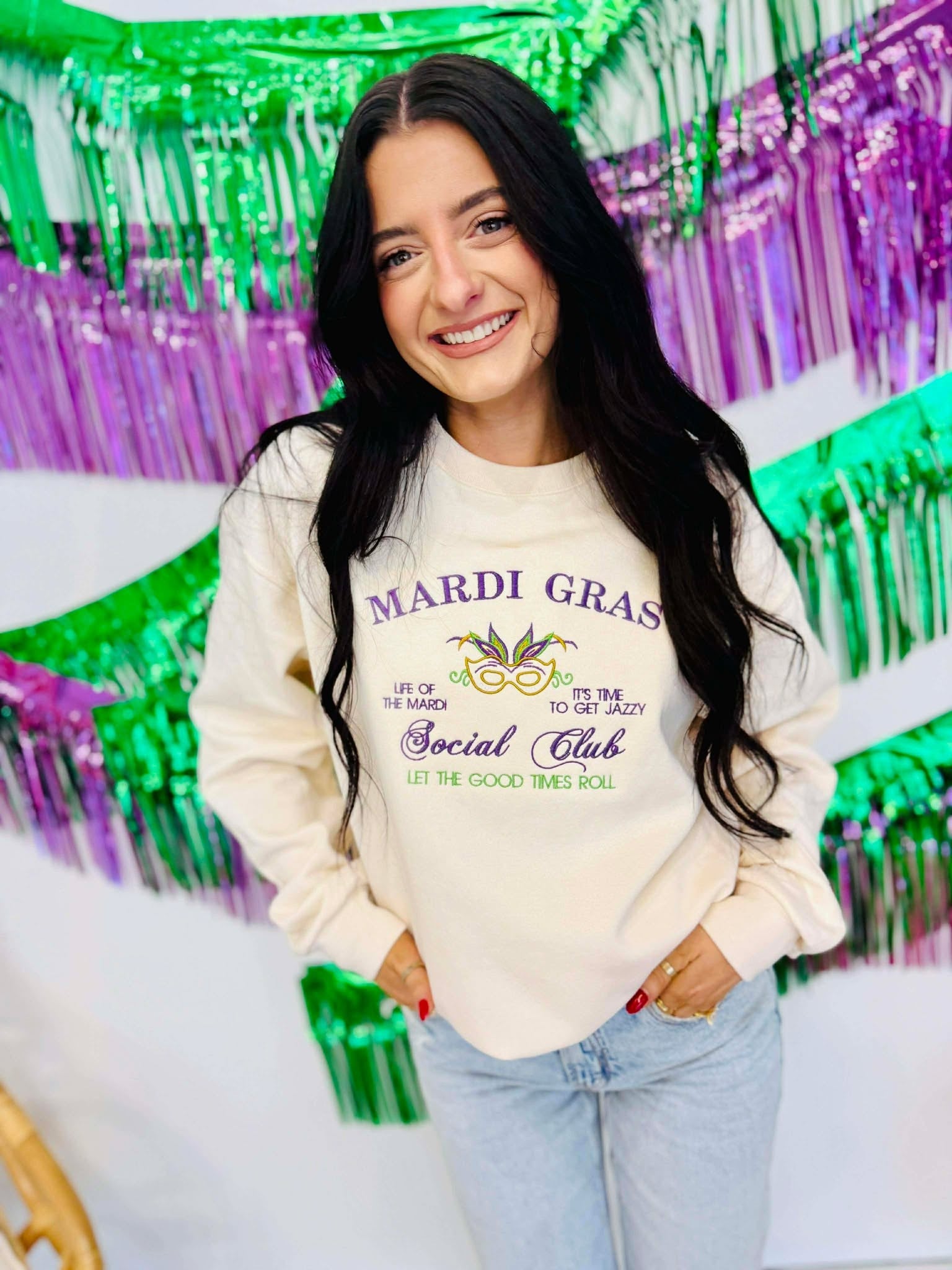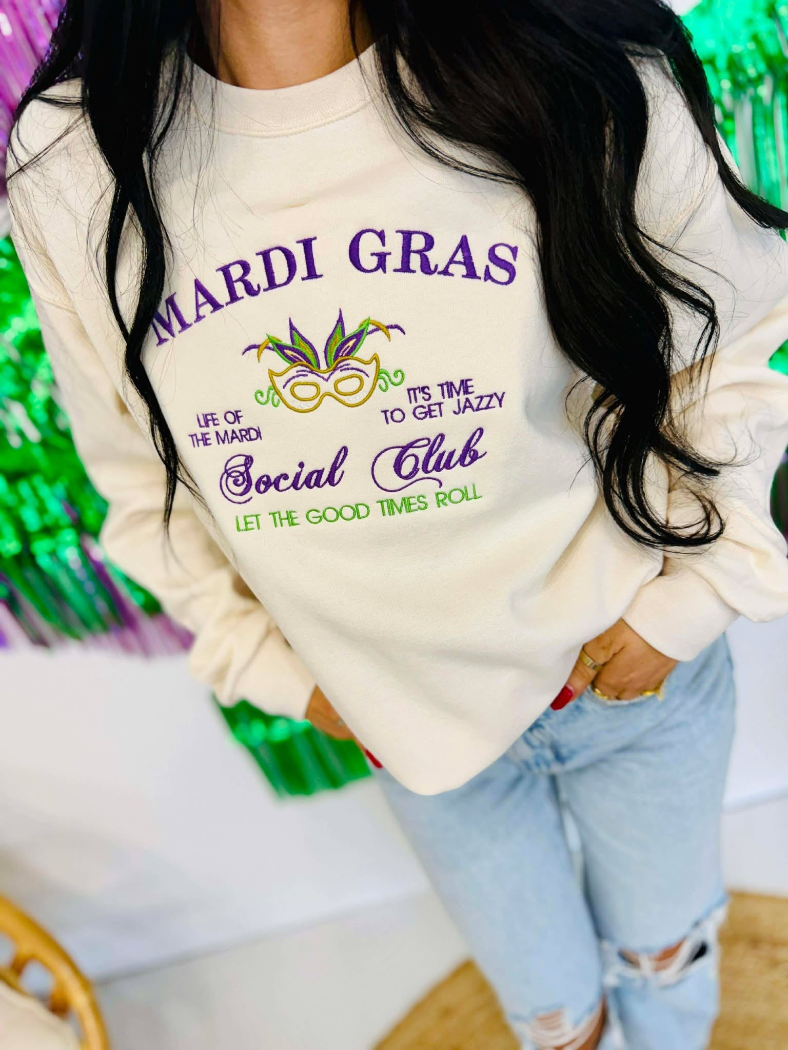 Mardi Gras Social Club Embroidered Sweatshirt